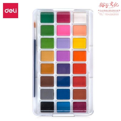 得力73870_24色固体水彩颜料(混)(24色/盒)SKU:yzwhyp979573