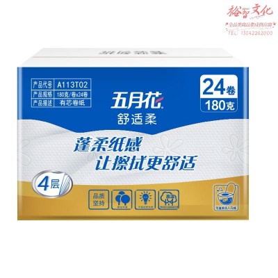 五月花A113T02有芯压花卷纸 4层180g*24卷/箱装 SKU:yzwhyp979658