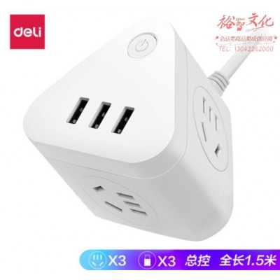 得力18321插座_3组 3U_1.5米_彩盒装(白)(只)SKU:yzwhyp980369