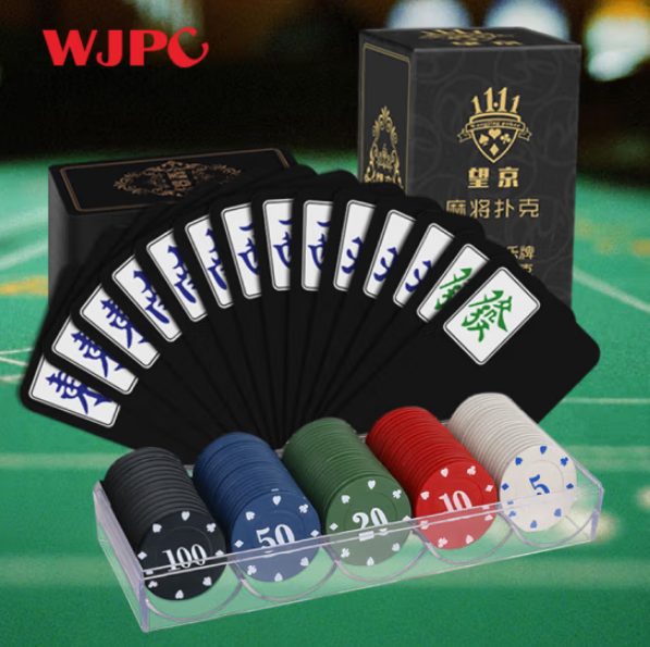 望京扑克黑金麻将牌 纸牌麻将筹码套装便捷家用小麻将扑克PVC材质磨砂手感 SKU:SKU:yzwhyp981066