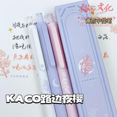 KACO文采按动笔 中性笔手账做标记笔 学生用水笔签字笔 夜樱 3支装(05黑芯*2 05粉芯*1 贴纸*1) SKU:yzwhyp981425