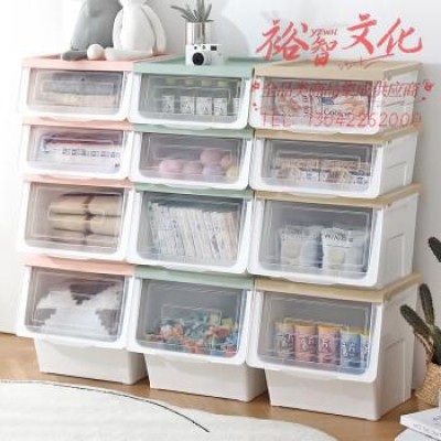 友耐斜口翻盖收纳箱 零食玩具整理箱衣服储物收纳盒带轮可叠放前开推入式北欧绿42L 3只装 SKU:yzwhyp982068