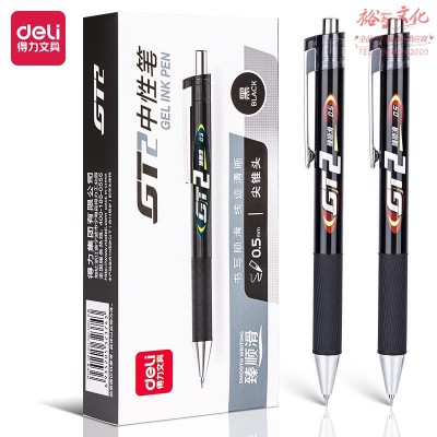 得力 GT2按动中性笔签字笔 0.5mm尖锥头 黑色 12支/盒 SKU:yzwhyp983675