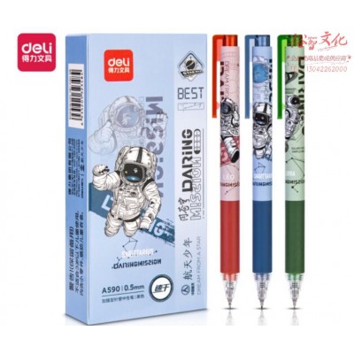 得力(deli)×航天联名款A590 0.5mm加强针管速干按动中性笔 签字笔水笔 黑色 12支/盒 SKU:yzwhyp984883