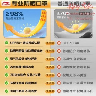 李宁 防晒口男女士罩冰丝面罩夏季遮阳防紫外线骑行户外登山跑步护眼角SKU:yzwhyp990161