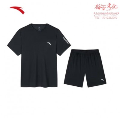 安踏速干套装丨男运动两件套夏季透气吸湿T恤短袖短裤跑步训练服 基础黑-6 S/M/L/XL/2XL/3XL/4XL码数SKU:yzwhyp990296