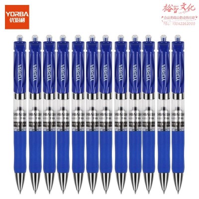 优必利 按动式中性笔 子弹头签字笔 0.5mm水笔走珠笔 蓝色 12支装 5202SKU:yzwhyp990389