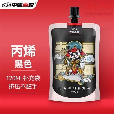 中盛画材(transon) 【加量20%】黑色丙烯颜料袋装补充装120ml球鞋定制diy手绘涂鸦石头画不掉色防水彩绘颜料补充包流体SKU:yzwhyp991490