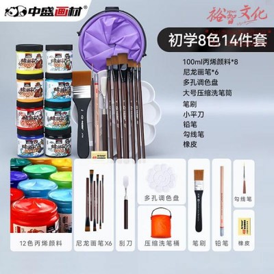 中盛画材(transon) 100ml丙烯颜料套装 手绘墙绘套装 初学者专用 常用8色14件套SKU:yzwhyp991699