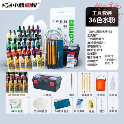 首页 > 办公用品 > 教具 > 中盛画材(transon) 【加量20%】36色水粉颜料套装初学者工具箱水粉画笔洗笔桶美术生专业艺考画材集训画画纸SKU:yzwhyp991901