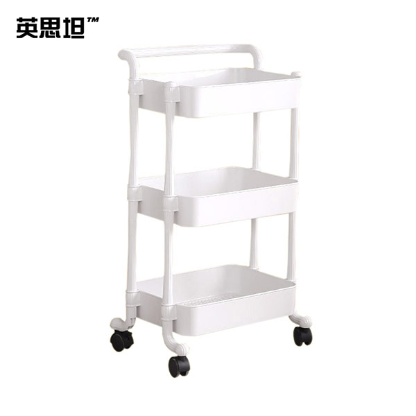 英思坦 全塑收纳车 实验室可移动储物架镂空置物架收纳小推车浴室架子整理架 三层带扶手 600819SKU:yzwhyp993532