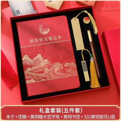 首页 > 办公用品 > 文具 > 红色国潮记事本党员活动礼品可定制LOGO 红色团员长城本 团徽 檀木笔 耕读书签 32gU盘SKU:yzwhyp994714