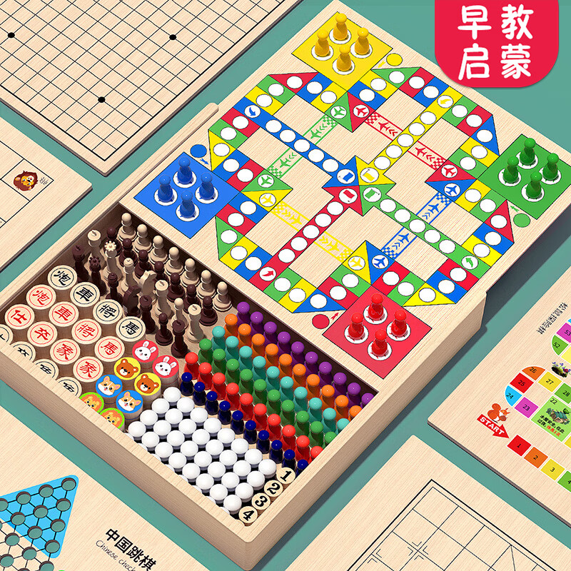 星星舟 儿童棋类大全飞行棋围棋五子棋斗兽棋多功能4合一棋盘游戏玩具SKU:yzwhyp995367