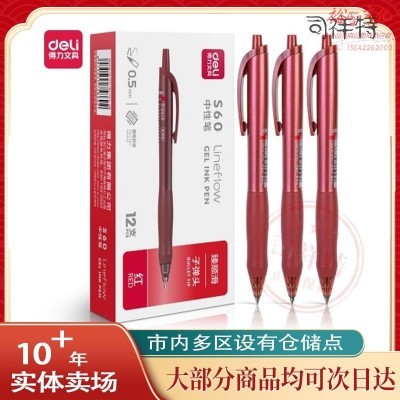 得力 S60 臻顺滑办公中性笔0.5mm子弹头(红)(支) SKU:SXT103329SKU:yzwhyp997355