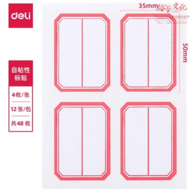 得力装标签贴72张 标签纸自粘性标签贴纸 不干胶标签贴纸便签贴 口曲纸口取纸 共288枚35*50mmSKU:yzwhyp1002060