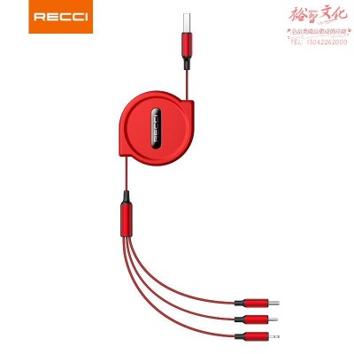 锐思Recci雷霆RTC-T08伸缩一拖三充电线4档拉伸长短随心不缠绕支持苹果安卓华为手机 红色SKU:yzwhyp1002356