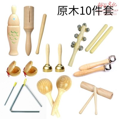 奥尔夫 幼儿园儿童打击乐器原木套装玩具教具响板沙锤铃鼓三角铁双响筒 原木10件套SKU:yzwhyp1002594