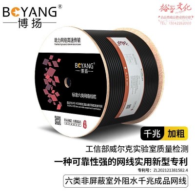 博扬 六类室外网线箱线305米 非屏蔽4对防水双绞阻水线 6类标准0.57线径千兆网线POE供电线 黑色 BY-W6305SKU:yzwhyp1007001
