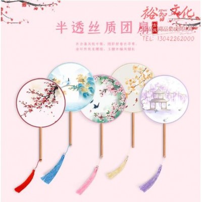 团扇古风扇子儿童夏天半透长柄舞蹈扇女童古装汉服旗袍刺绣 小圆扇SKU:yzwhyp1007216