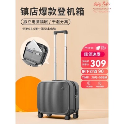 米熙登机箱行李箱男万向轮拉杆箱子18英寸出差旅行箱包密码箱矿岩灰73SKU:yzwhyp1016639