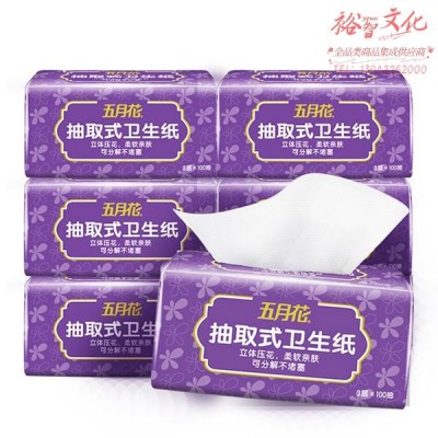 五月花 (May Flower) 厕所抽纸 3层100抽*6包 软包抽取式压花卫生纸 大规格 溶于水可冲马桶SKU:yzwhyp1017560