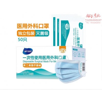 海氏海诺 一次性 口罩 三层外科灭菌 50只独立包装 口罩防尘防花粉SKU:yzwhyp1021450