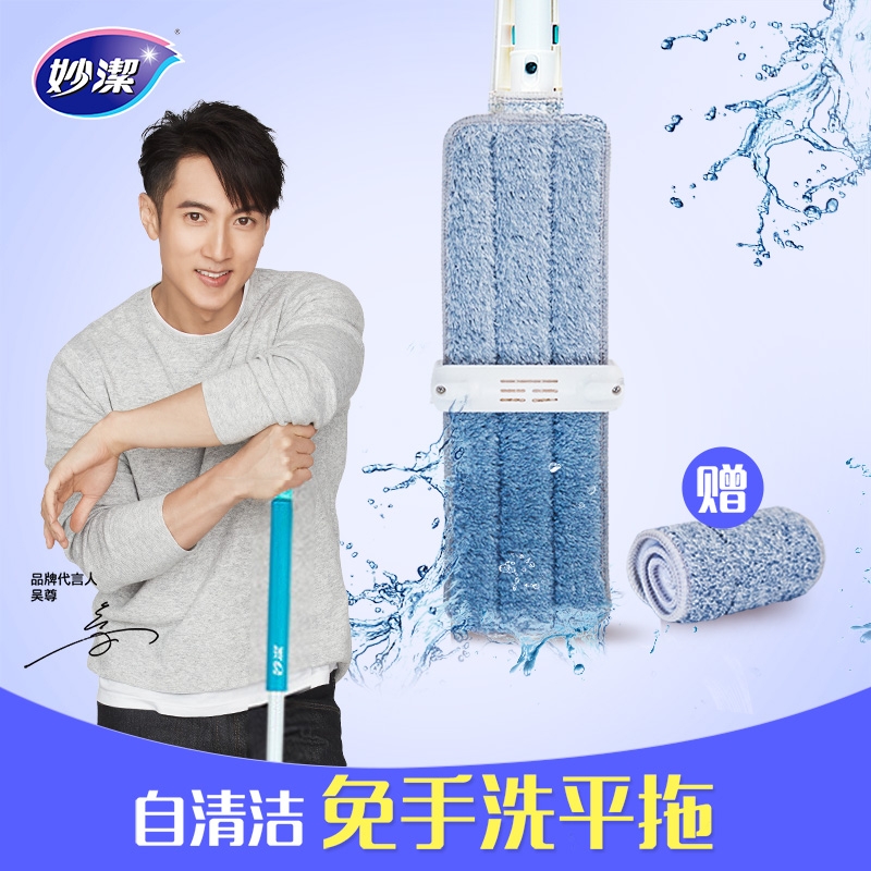 妙洁 巧净免手洗平板拖把 木地板瓷砖干湿两用 共2块原装拖布SKU:yzwhyp1021464