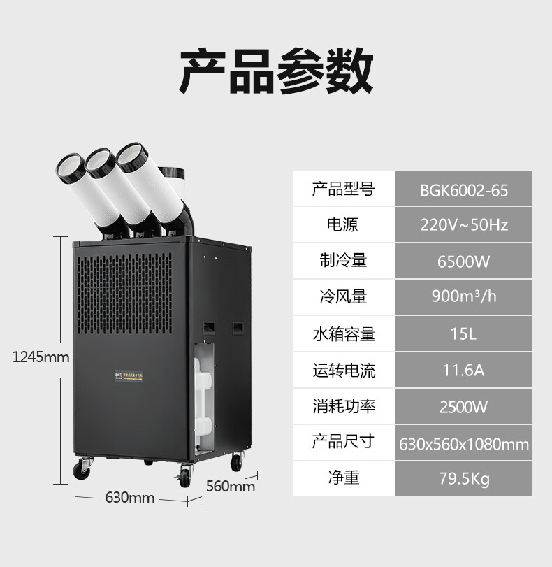 宝工电器(BGE)工业移动空调压缩机一体式冷风机 3匹 6500W双管 机械款SKU:yzwhyp1024032