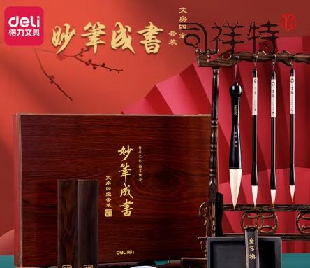 首页 > 办公用品 > 文具 > 得力(deli)文房四宝套装 妙笔成书毛笔砚台书法成人初学者笔墨纸砚楷书 不含笔架 礼盒10件套新年礼物HW51SKU:SXT10018144SKU:yzwhyp1035563
