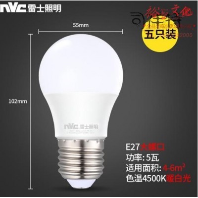 雷士(NVC)LED灯泡球泡 5瓦E27大螺口 光源节能灯 暖白光4000K 5只装SKU:SXT10018197SKU:yzwhyp1035615