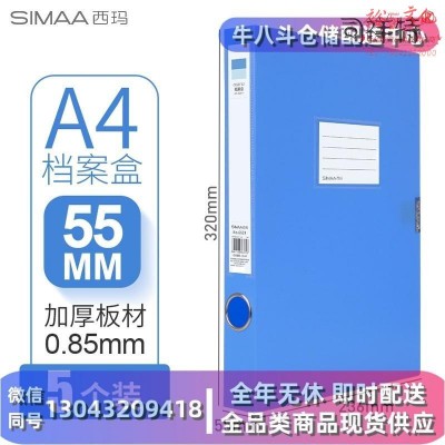 首页 > 办公用品 > 文具 > 西玛(SIMAA)5只装 55mm 加厚款A4塑料PP蓝色档案盒 文件资料盒 财务凭证收纳盒 办公用品 19119SKU:SXT10018257SKU:yzwhyp1035674