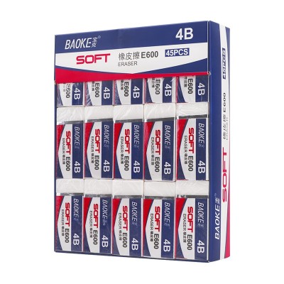 宝克(baoke) E-600 大号橡皮擦 学生考试涂卡练习作业橡皮擦4B白色考试专用/商务办公财会用橡皮擦 文具批发 5.1*2.4*1.1cm 45块装