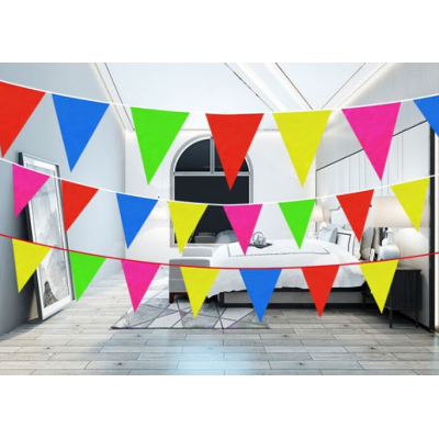 首页 > 建筑建材 > 装饰材料 > 彩色三角旗帜烫边三角串旗小号装饰布置小彩旗80米150面小旗