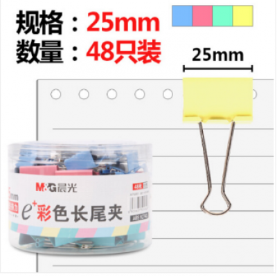晨光(M&G)长尾夹ABS92741文具25mm彩色长尾夹 金属票据夹 Eplus系列办公燕尾夹 48只/筒