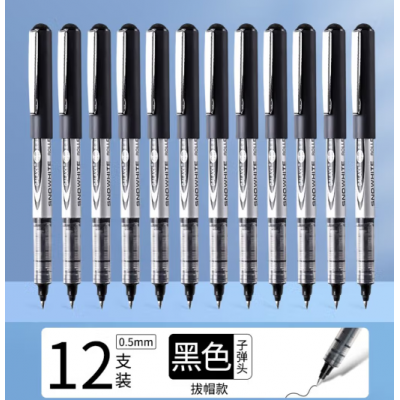 白雪 PVR-155 黑色 直液式走珠中性笔 0.5 (12支/盒)商务办公学生水笔走珠笔 开学文具