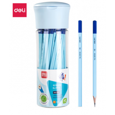 得力(deli)58164_矫姿铅笔50支桶装HB三角杆内凹学生儿童书写素描绘画铅笔(混)50支/筒