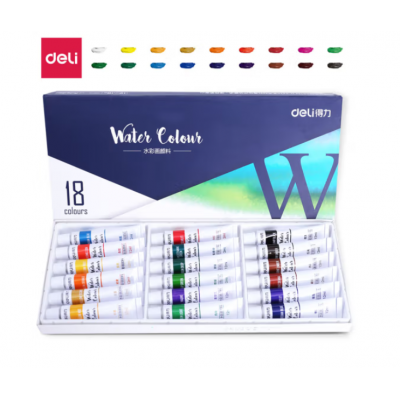 得力(deli)水彩颜料 18色12ml 大容量画画美术专用 便携专业级学生儿童绘画套装便携工具写生 画具画材73851