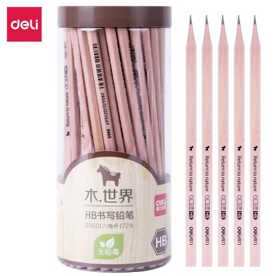 得力原木桶装铅笔考试专用素描绘图铅笔筒装学生儿童书写铅笔 72支/桶 【HB】六角笔杆 S950