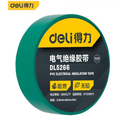 得力(deli)PVC电气绝缘胶带 耐寒耐磨抗老化无铅阻燃DL5266 单卷装10m绿