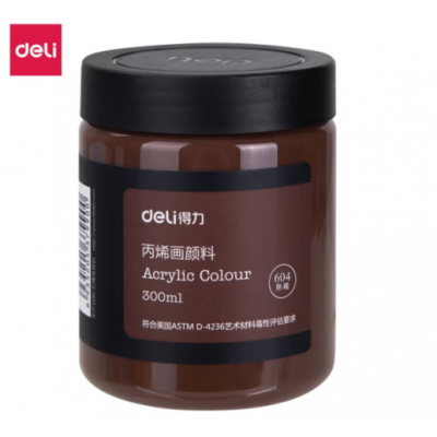 得力(deli)丙烯颜料300ml大容量 墙绘手绘DIY画画 DIY丙烯画大桶装大瓶 美术绘画工具 画具画材 73875 熟褐
