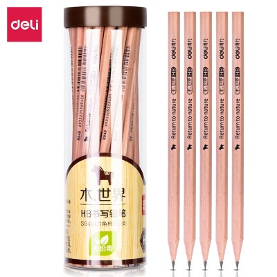 得力(deli) 原木桶装铅笔考试专用素描绘图铅笔筒装学生儿童书写铅笔 30支/桶【HB】 六角笔杆 S940