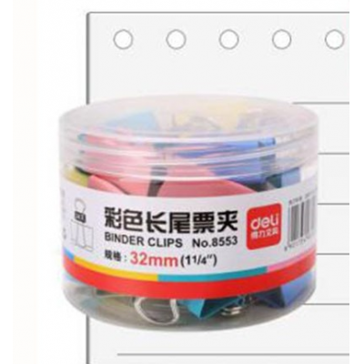 首页 > 办公用品 > 文具 > 彩色长尾票夹 32mm 得力(deli)24只32mm彩色长尾夹票夹 3#中号金属燕尾夹票据文件夹子 办公用品 8553