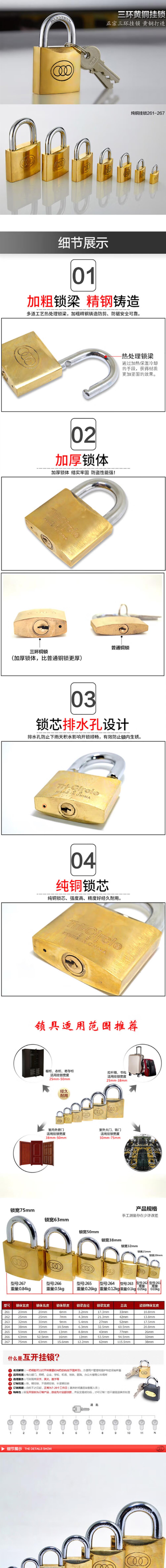 三环 铜挂锁 63mm 配10把钥匙 (定制款联系客服)