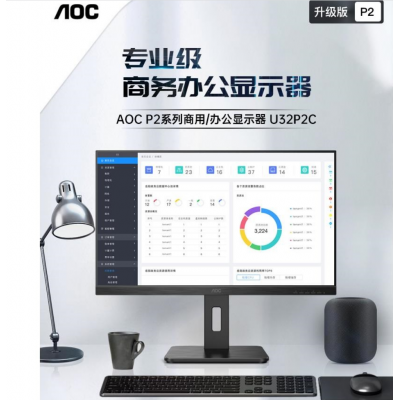 首页 > 办公设备 > 液晶显示器 > AOC U32P2C 31.5英寸 4K显示器 Type-c 65W反向充电 窄边框 旋转升降 专业设计办公电脑显示屏