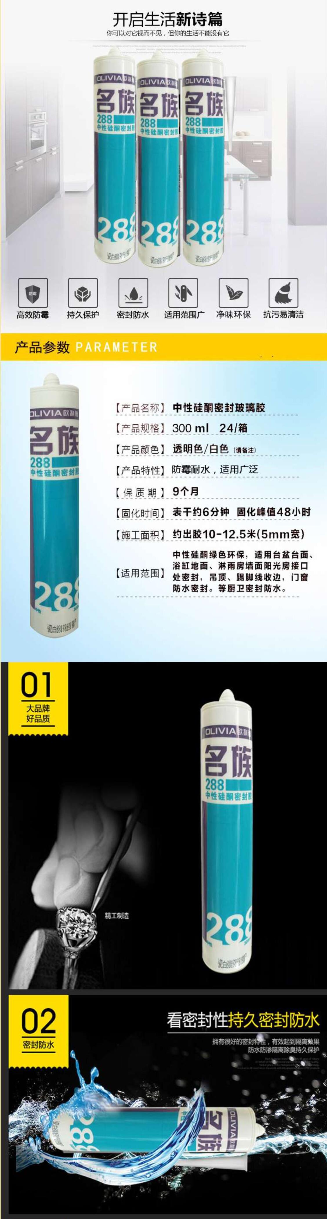 名族 288中性硅酮密封胶(银色)玻璃胶结构胶防霉 340ml/支