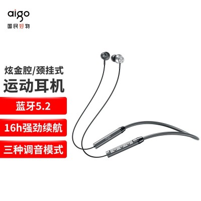 爱国者(aigo)项圈蓝牙耳机 无线挂脖式音乐运动跑步颈挂式耳机 蓝牙5.2 运动通话音乐耳机 XT6 (石墨灰)