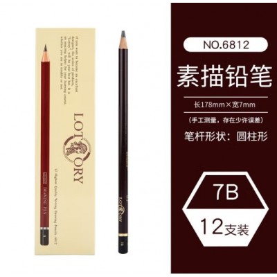 老人头铅笔素描笔lotory画材速写炭笔碳笔软中硬软炭美术生专用2比套装碳铅 7B【12支/盒】 老人头