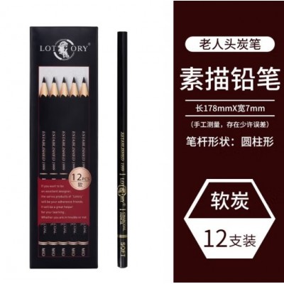 老人头铅笔素描笔lotory画材速写炭笔碳笔软中硬软炭美术生专用2比套装碳铅 软炭【12支/盒】木杆 老人头