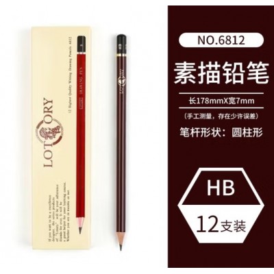 老人头铅笔素描笔lotory画材速写炭笔碳笔软中硬软炭美术生专用2比套装碳铅 HB【12支/盒】 老人头
