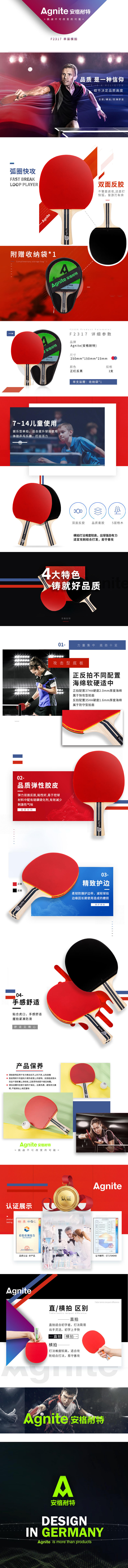安格耐特F2317一星乒乓球拍(红+黑)(横拍)(单支装) SKU:RX0108508